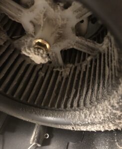 (写真は、湿気でホコリ汚れが詰まった換気扇)